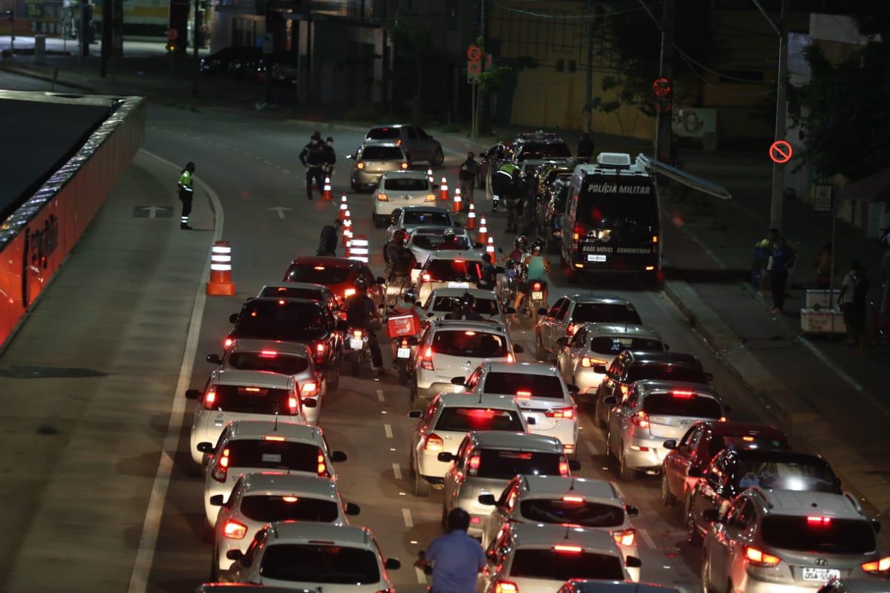 A poucas horas do início do decreto de isolamento rígido contra a Covid-19 em Fortaleza, motoristas que passaram pela Avenida Aguanambi, no bairro de Fátima na noite desta quinta-feira (7) se depararam com um grande congestionamento durante uma blitz educativa realizada pelos órgãos de segurança municipal e estadual.