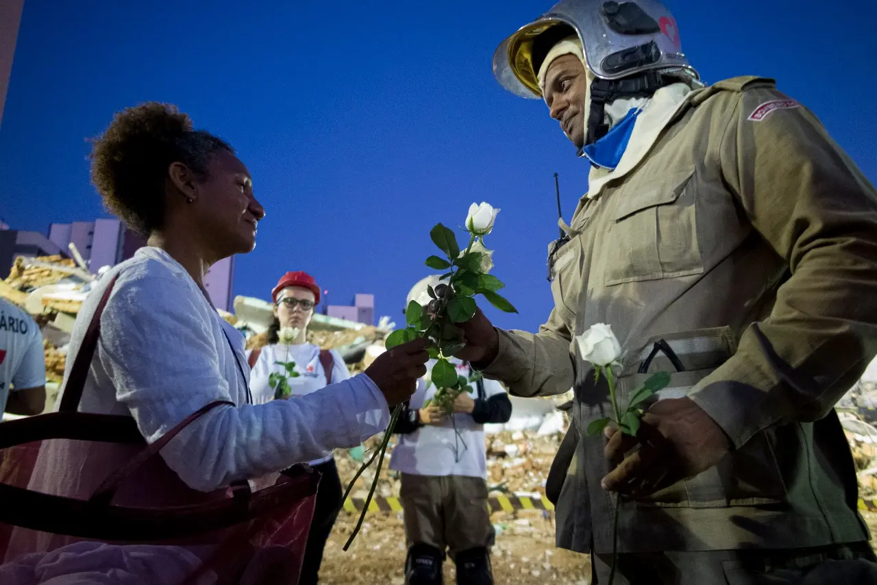Já o grupo de voluntários da área da saúde distribuíram flores e fizeram orações. “Além daquelas pessoas que estavam debaixo dos escombros, esses bombeiros que trabalharam dia e noite também precisavam de ajuda. Nós tentamos, de alguma forma, dar um pouco de conforto a eles”, disse Leila Diniz, uma das coordenadoras do grupo.