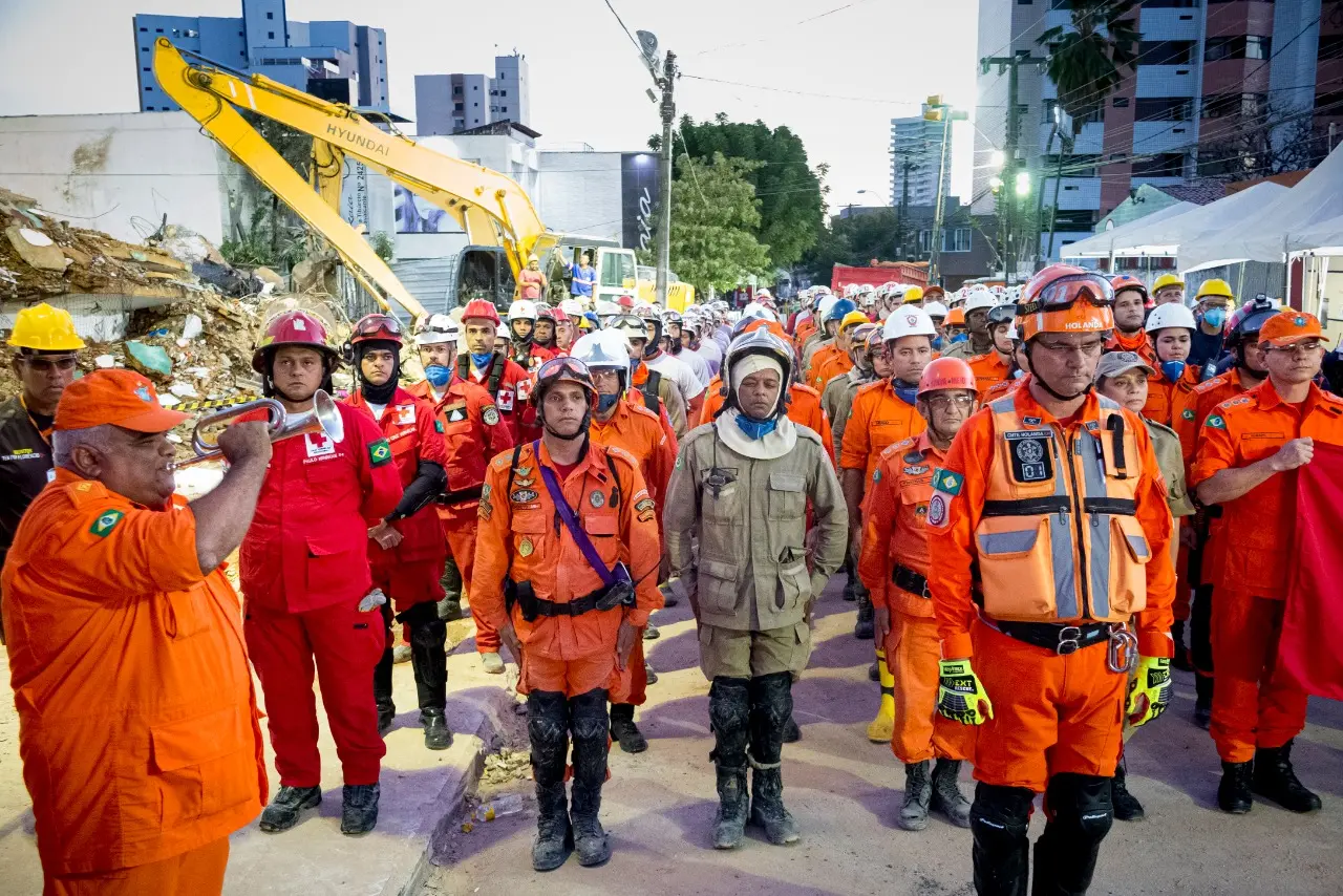 Bombeiros e voluntários prestam homenagens com o fim da operação de buscas no Edifício Andrea