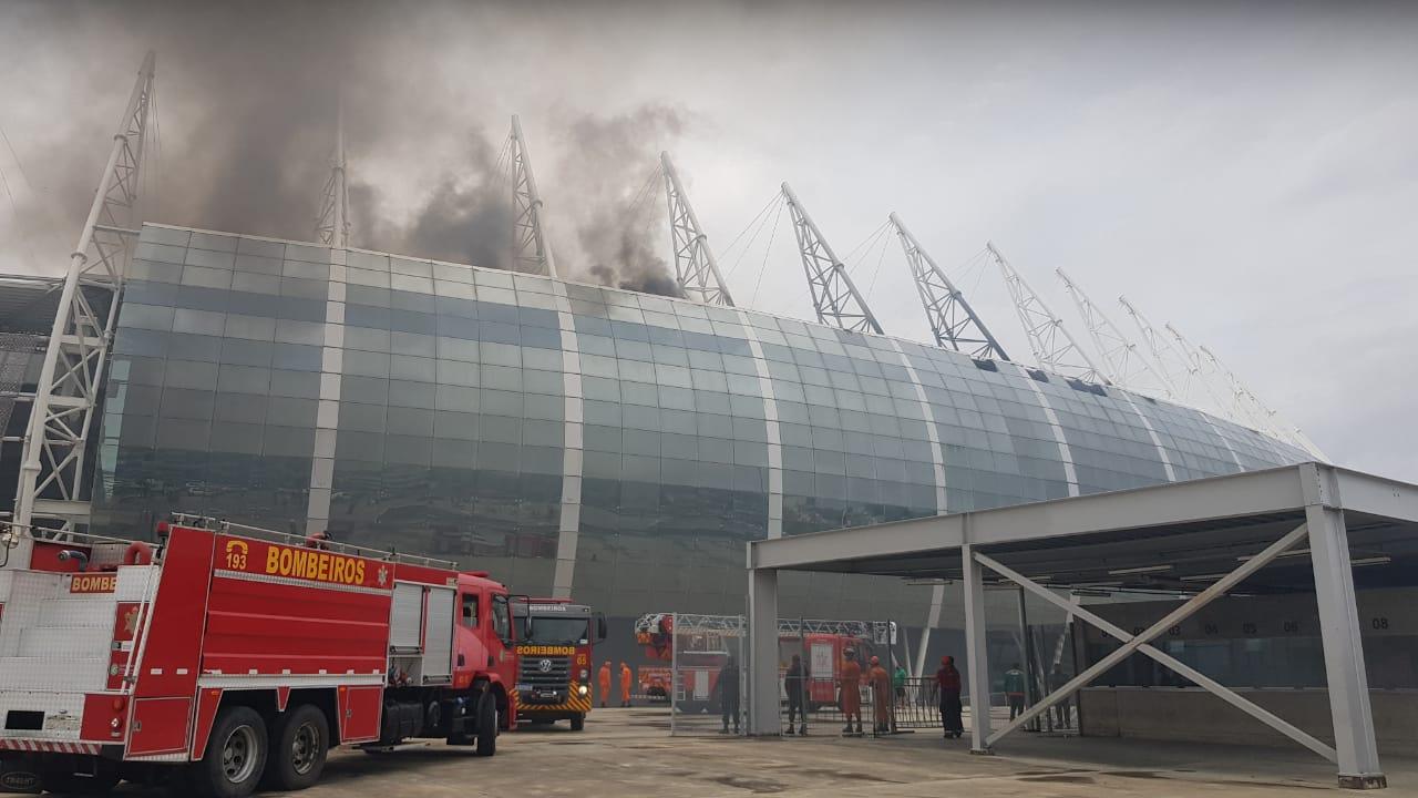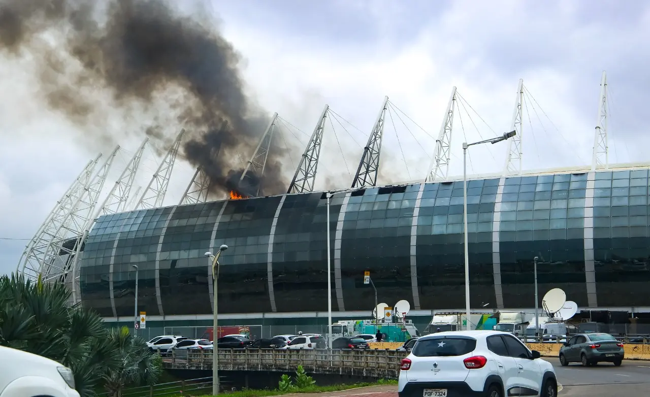 Cabine de rádio da Arena Castelão pega fogo na manhã deste sábado (30); veja imagens