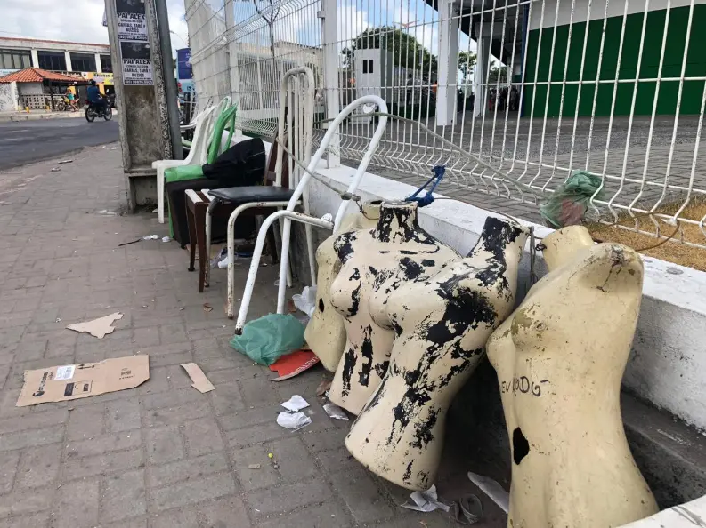 Cadeiras, manequins e até pedras são usados para guardar lugar em fila para biometria em Fortaleza