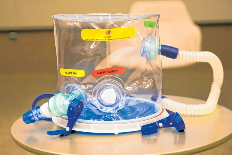Dispositivo oferta oxigênio através de uma cúpula transparente, melhorando o quadro respiratório de infectados pelo novo coronavírus. Após aprovação da Anvisa, produção industrial do item começa no próximo mês