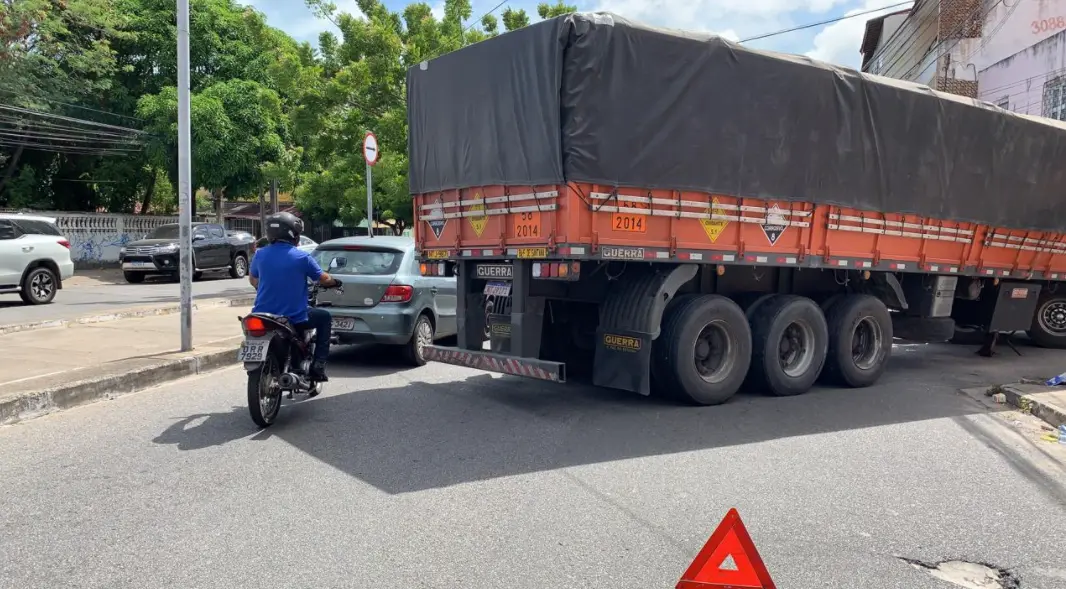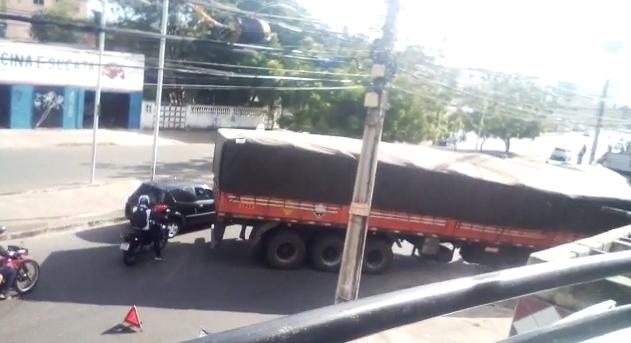Carreta fica atravessada na pista e causa congestionamento na Avenida Sargento Hermínio