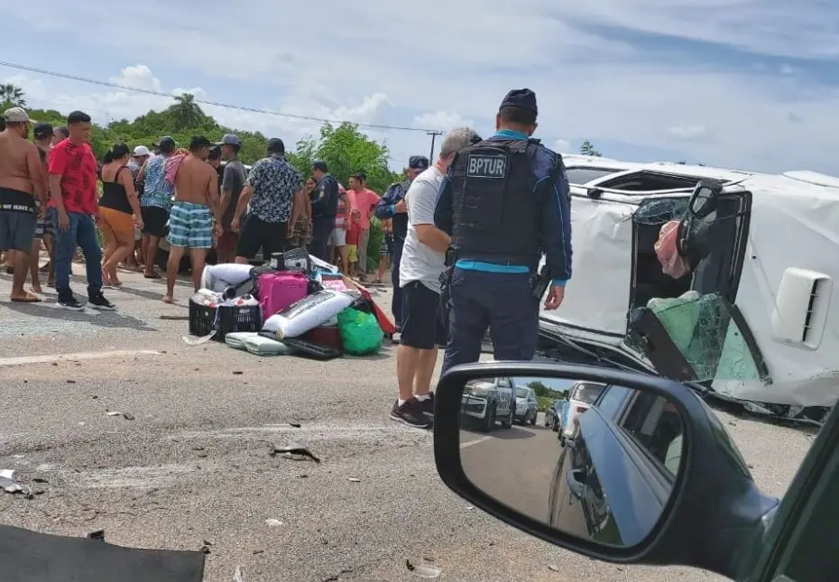 O motorista de uma caminhonete perdeu o controle da direção e tombou o veículo na tarde deste domingo (19) no km 38 da CE-040, em Aquiraz.