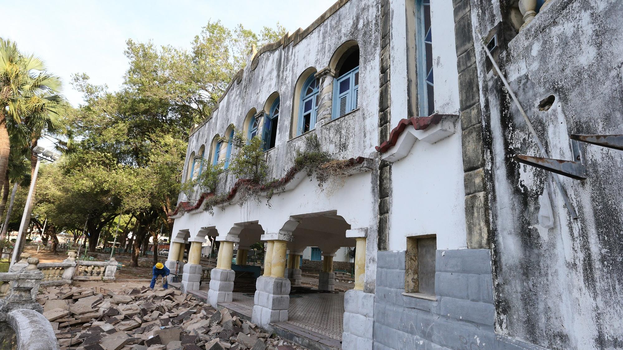 As obras de revitalização da Cidade das Crianças, segundo a Secretaria Municipal da Infraestrutura (Seinf), começaram em junho deste ano. Na última quarta-feira (12), as equipes responsáveis retiraram uma espécie de “puxadinho” que foi anexado ao casarão, sem fazer parte da estrutura original.