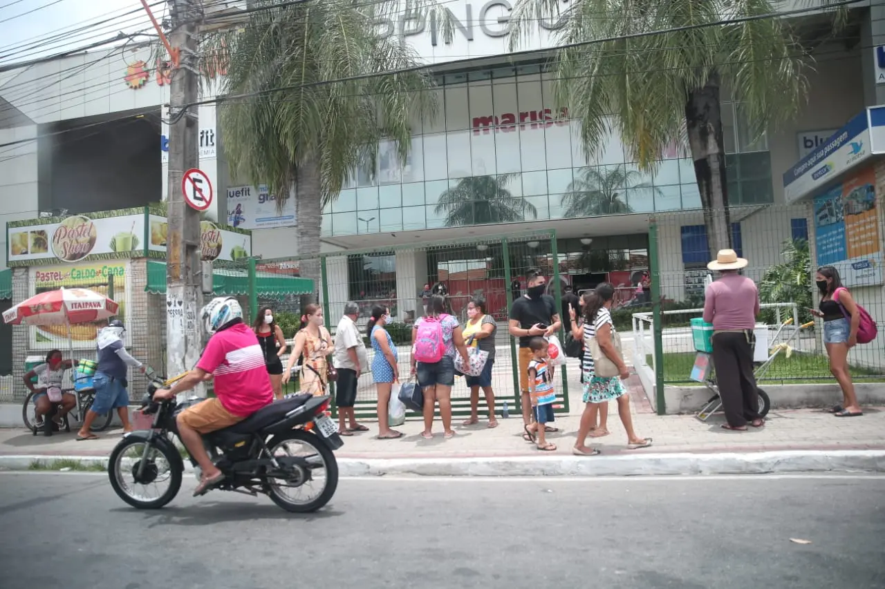 Apesar de estar em lockdown, a cidade de Caucaia, na Região Metropolitana de Fortaleza (RMF), registrou, na manhã desta sexta-feira (12), intensa movimentação de pessoas nas ruas. A medida, contra o avanço da Covid-19, foi anunciada pelo prefeito Vitor Valim (Pros) em transmissão ao vivo nas redes sociais e publicada no Diário Oficial do município nessa quinta-feira (11).