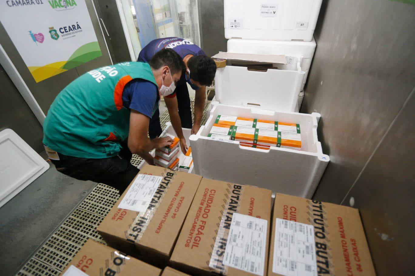 Na sexta-feira (20), o Ceará recebeu 125,1 mil doses da Pfizer e outras 193,1 mil doses da vacina CoronaVac. Elas serão usadas para aplicação de doses 1 e 2 em todos os municípios cearenses.