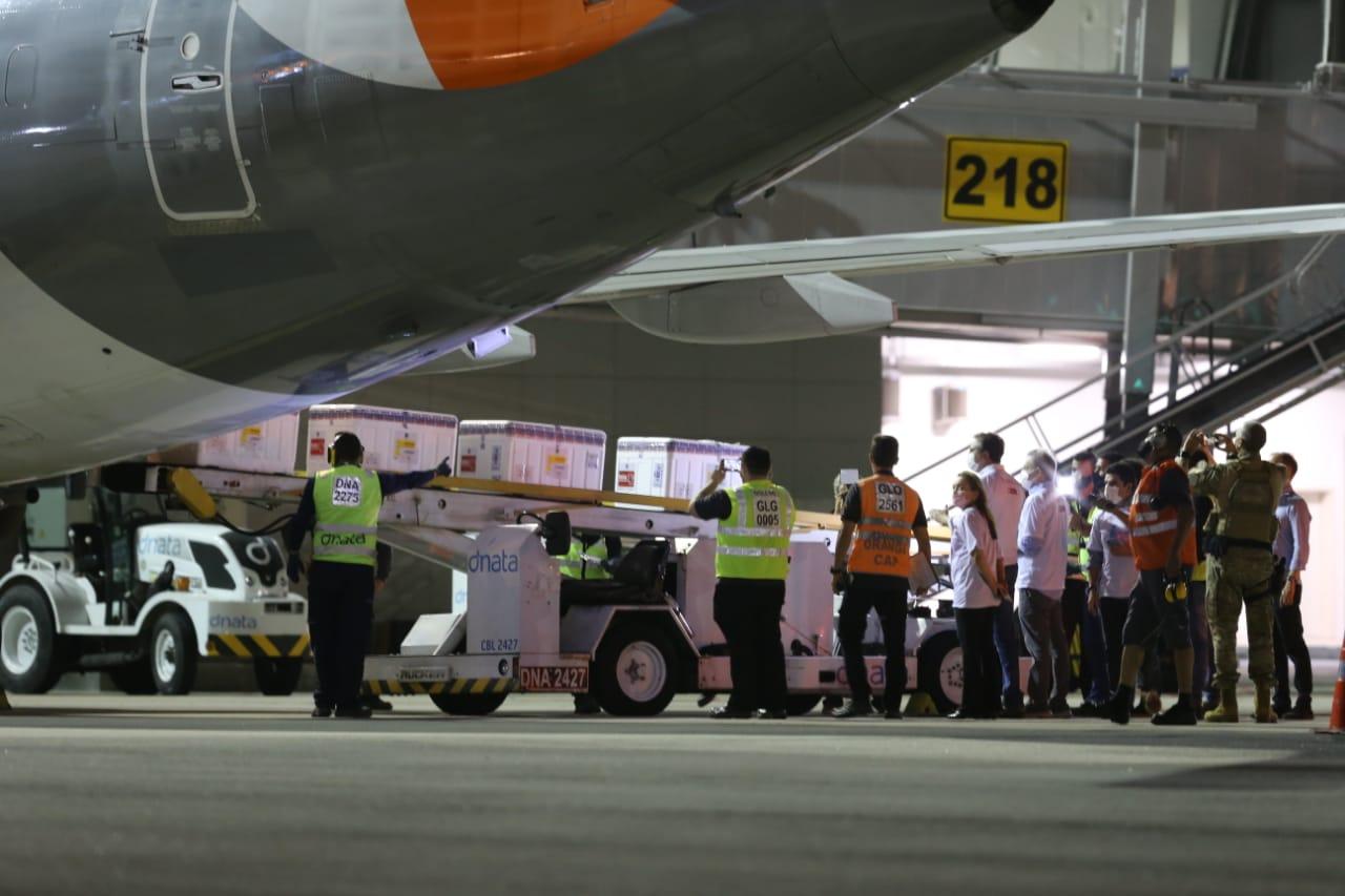 Já a primeira remessa do imunizante CoronaVac chegou no dia 18 de janeiro, em um avião da Força Aérea Brasileira (FAB) com 218 mil doses.