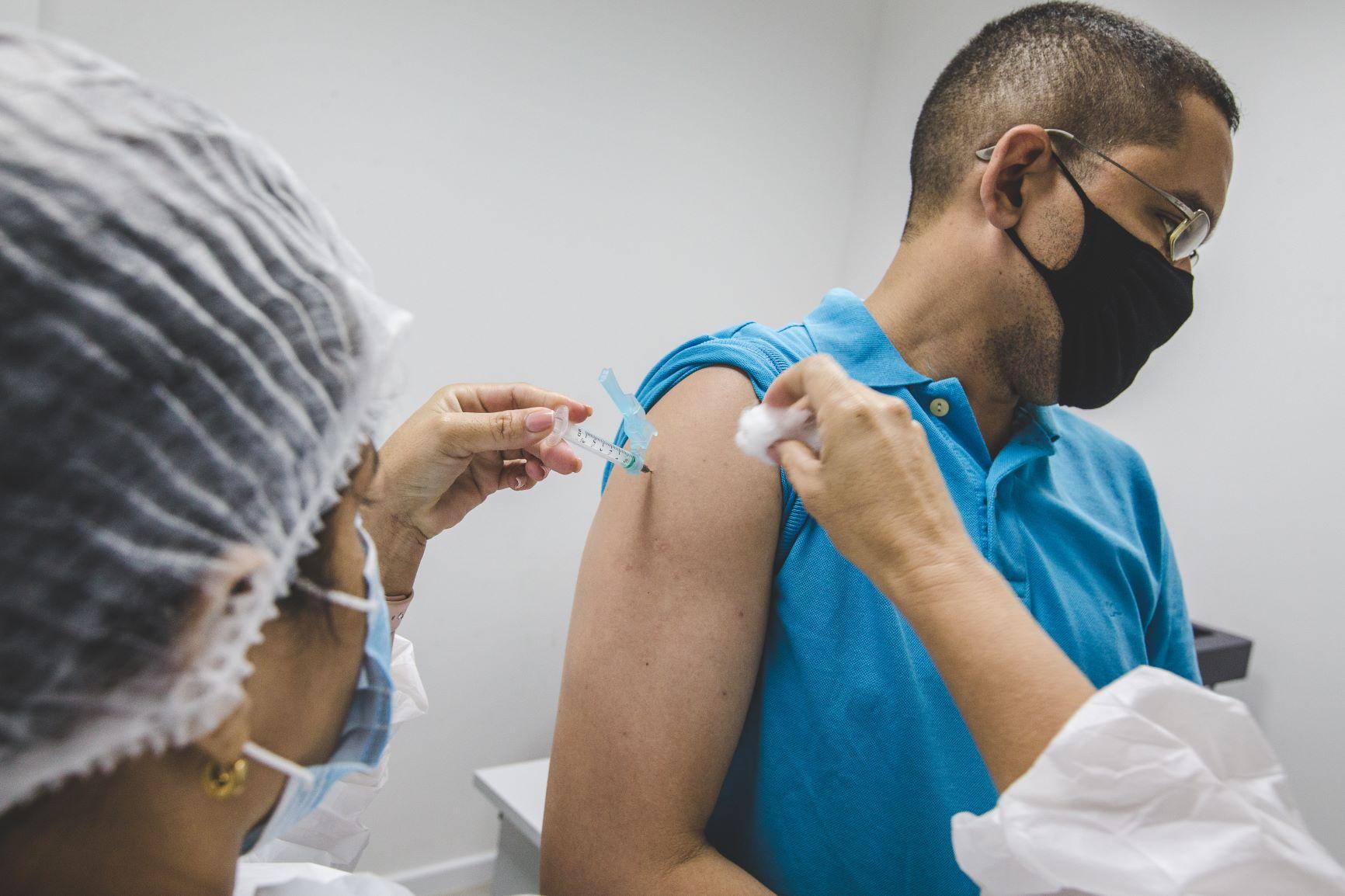 86,01% dos idosos acima de 75 anos já foram vacinados com o primeiro esquema do imunizante. 74,07% dos profissionais de saúde já receberam a D1, enquanto 67,98% tiveram a D2 aplicando, completando a imunização.