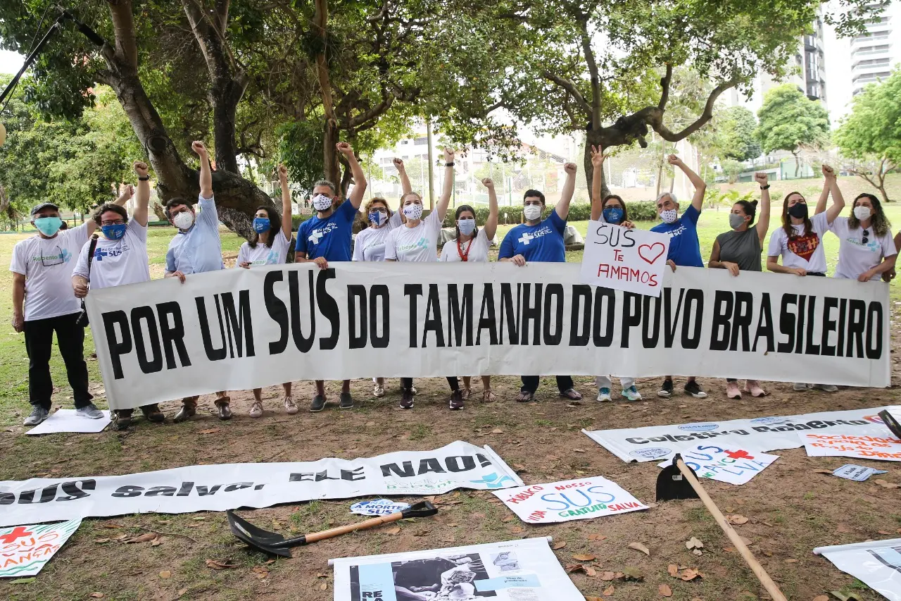 Um grupo de profissionais da Medicina que formam o Coletivo Rebento se reuniram no Parque do Cocó, em Fortaleza, para cobrar mais investimentos no Sistema Único de Saúde (SUS), que completa 30 anos neste sábado (19). Foram plantadas mudas de árvores e confeccionados faixas e cartazes em defesa do SUS.