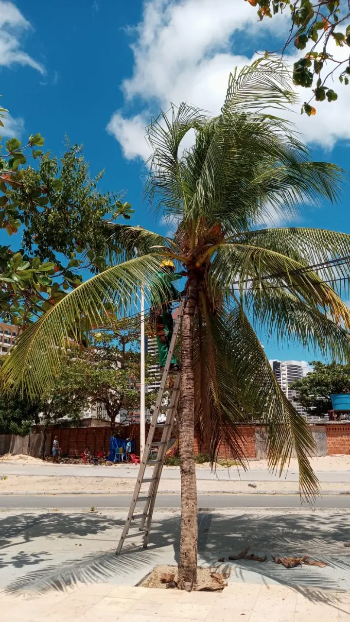 “Há duas semanas, equipes técnicas estão realizando trabalho no local retirando cocos e palhas secas dos coqueiros. Até o momento, já foi concluído o serviço em todo o trecho do calçadão da Praia de Iracema e, neste momento, segue em andamento os serviços no trecho do calçadão da Avenida Beira Mar”, disse, em nota, a UrbFor.