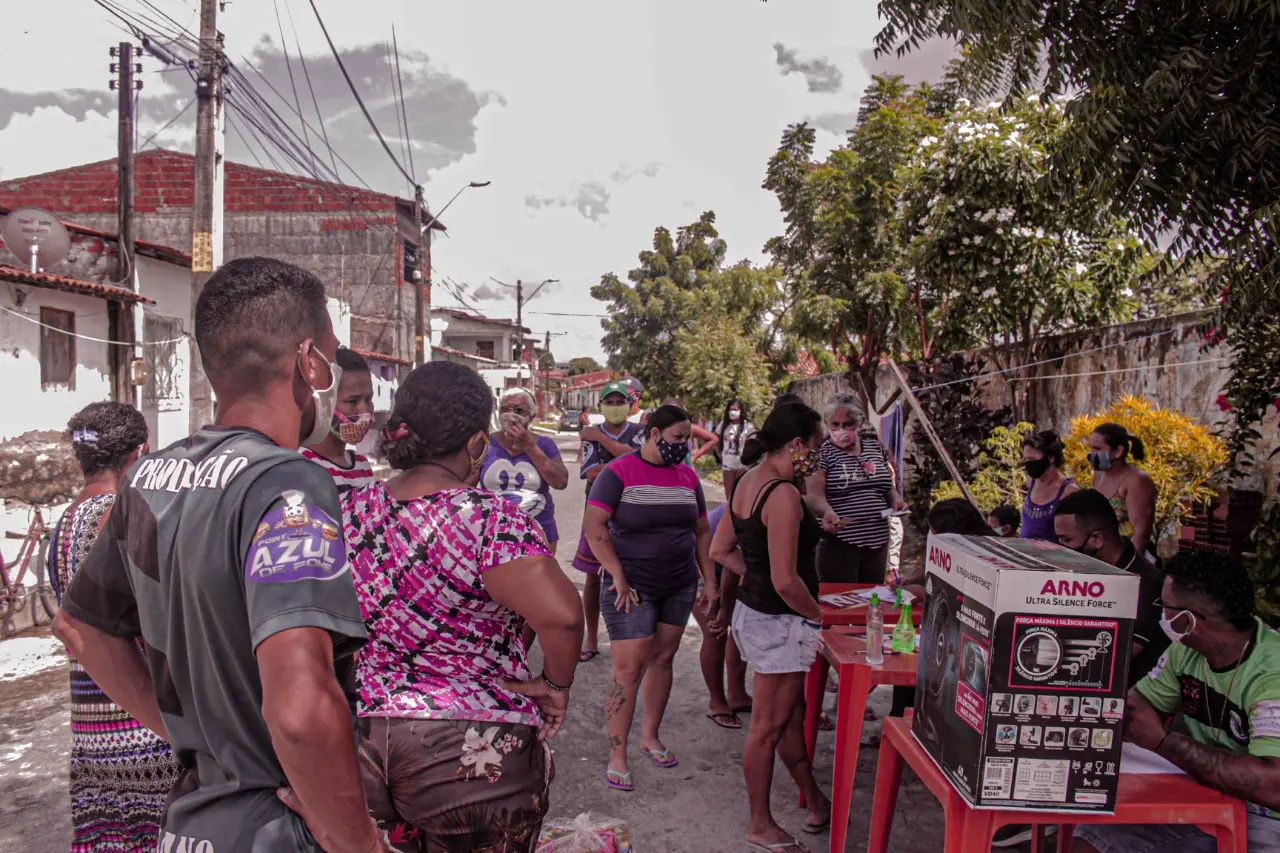 “A gente coloca as cadeiras, as mesas, e álcool em gel à disposição. As pessoas sentam e a gente realiza o cadastro delas”, detalha o fundador e presidente do coletivo, Jardel Silvestre. Até o momento, mais de 100 cadastros já foram realizados com moradores do local e de outros bairros, como Conjunto Palmeiras e Santa Maria.