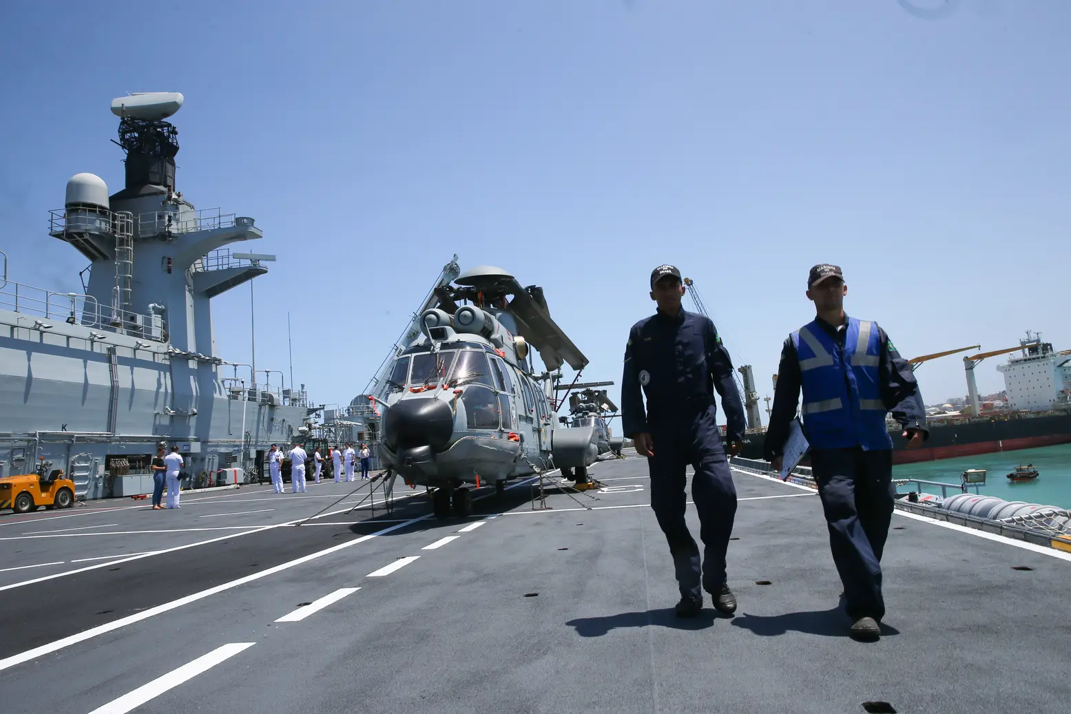 Conheça o interior do maior navio da Marinha do Brasil, que monitora manchas de óleo