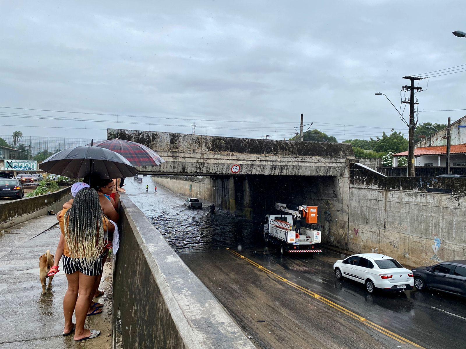 Desde a madrugada deste domingo (2), Fortaleza atravessa um cenário de fortes chuvas. Alagamentos foram registrados em diferentes pontos da cidade durante o dia e o acúmulo de água exigiu atenção redobrada de pedestres e motoristas. O túnel situado na rua Wenefrido Melo, no bairro Mondubim, foi um dos locais atingidos.