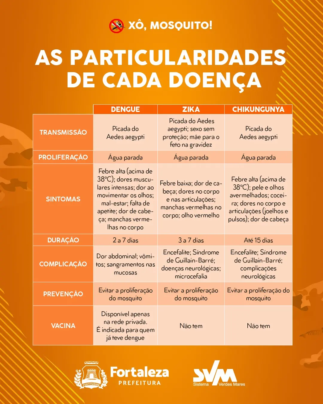 A dengue prevalece entre as três, ocorrendo predominantemente nas faixas etárias de 20 a 49 anos e no sexo feminino. Até o momento, houve registro de um caso grave da doença no Ceará, no município de Viçosa do Ceará, que resultou na morte do paciente. As outras duas arboviroses não causaram mortes, conforme os boletins epidemiológicos lançados até agora.