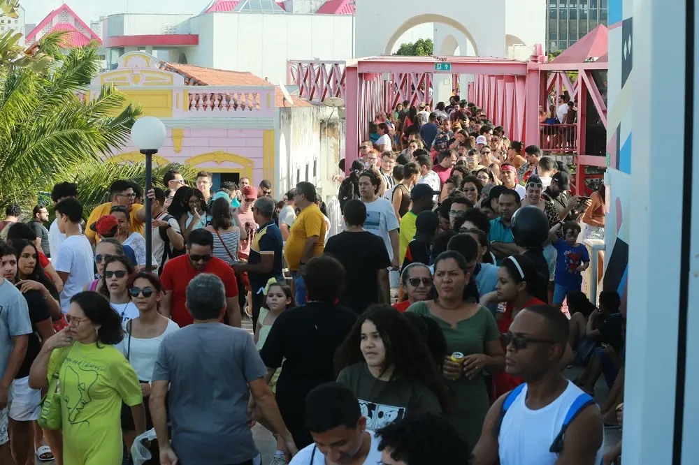 Complexo que abriga o Planetário Rubens de Azevedo, o Centro Dragão do Mar de Arte e Cultura comportou diversas famílias para garantir a vista. A fila gigantesca tomou toda a passarela e a rampa.