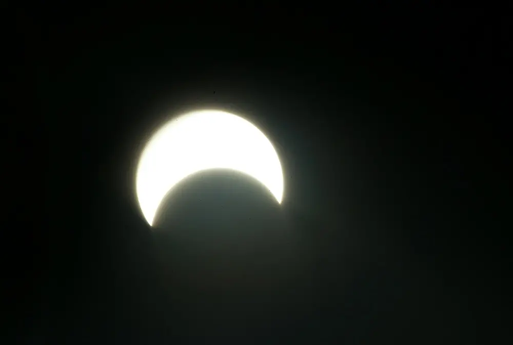 Na Capital, o eclipse iniciou às 15h23. O ápice foi às 16h42, quando a Lua escondeu 83% do Sol.