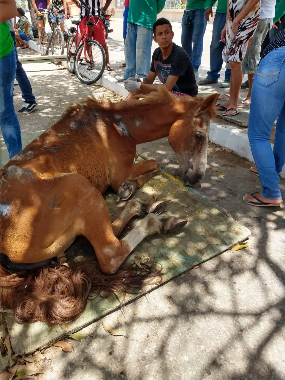 Uma égua amanheceu agonizando na Via Expressa (Av. Almirante Henrique Saboia), próximo a Estação Mucuripe do Veículo Leve sobre Trilhos (VLT), na manhã desta quinta-feira (18). Segundo moradores da região, o animal está há mais de cinco horas no local sem receber assistência de órgãos competentes, mesmo após os contatos feitos pelas pessoas que se mobilizaram para ajudar.