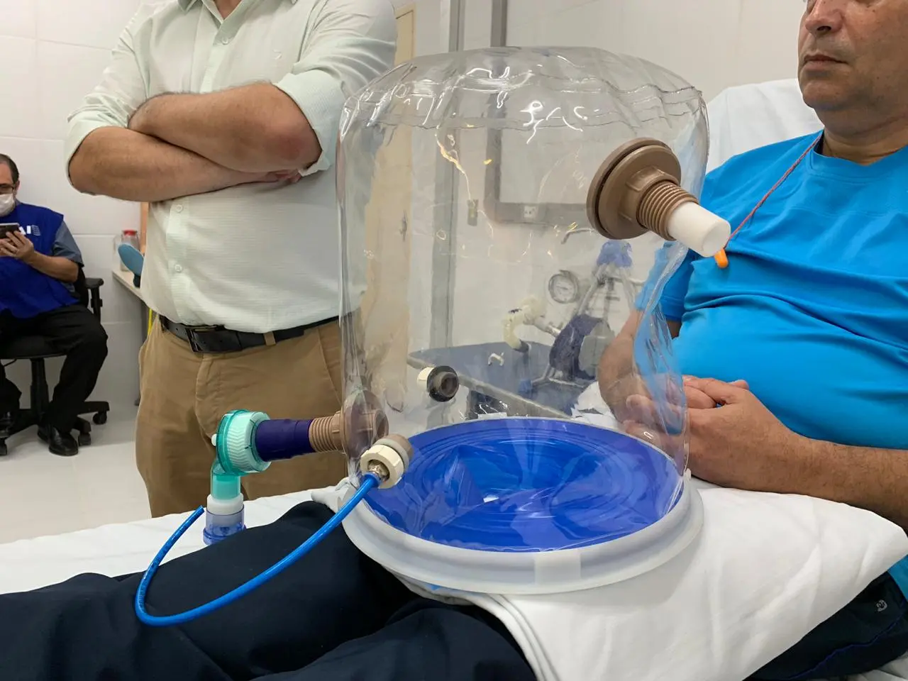 O equipamento minimiza o avanço de dificuldades respiratórias, reduzindo a necessidade de ventiladores mecânicos