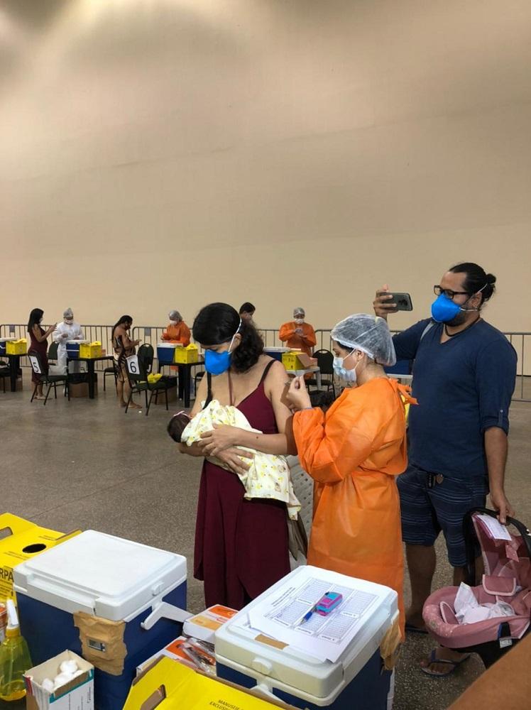No aguardo do terceiro filho, Lázaro, a manicure Antônia Aline Sousa também foi só alegria ao receber a primeira dose da vacina. Ela conta que a previsão de nascimento do bebê deve ser para amanhã, o que reforçou a necessidade de receber o imunizante.