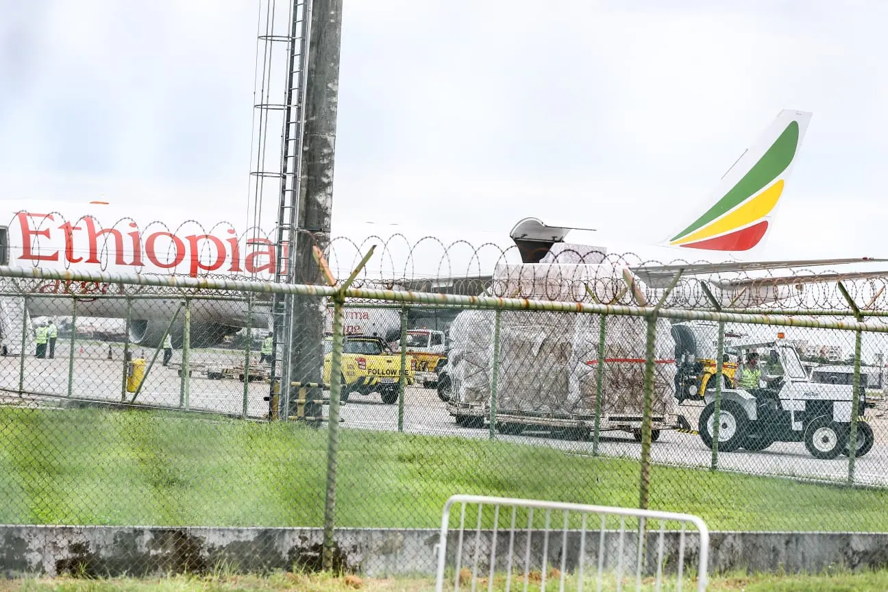 O avião vindo da China com carregamento de 90 toneladas de insumos hospitalares para atender a demanda do sistema público de saúde do Estado pousou em Fortaleza no início da tarde deste domingo (26). A aeronave, que fez escala em Togo, na África, pousou na Capital por volta das 12h30.