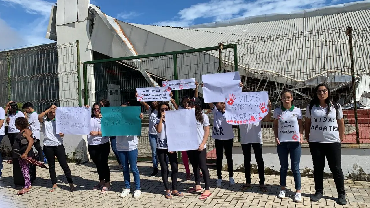 Com cartazes, cerca de 50 alunos se reuniram em frente à instituição e questionaram o investimento na escola e o cuidado com as vidas dos estudantes no local. “Senhor político, você teria coragem de colocar seu filho debaixo desse teto?”, dizia um dos cartazes. “Vidas importam”, afirmava outro. Camisetas traziam a mensagem "#padrãomec".