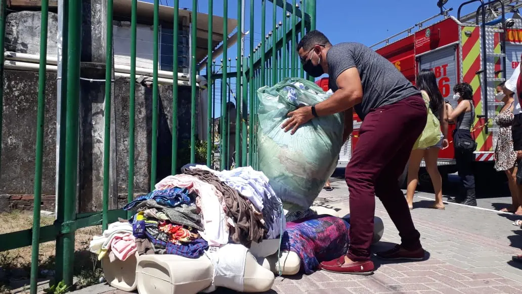 Feirantes e permissionários dos boxes que funcionavam no Casarão dos Fabricantes, no Centro de Fortaleza, foram ao local na manhã deste domingo (6) para tentar resgatar as mercadorias que sobraram após o incêndio de grandes proporções que destruiu o interior do prédio.