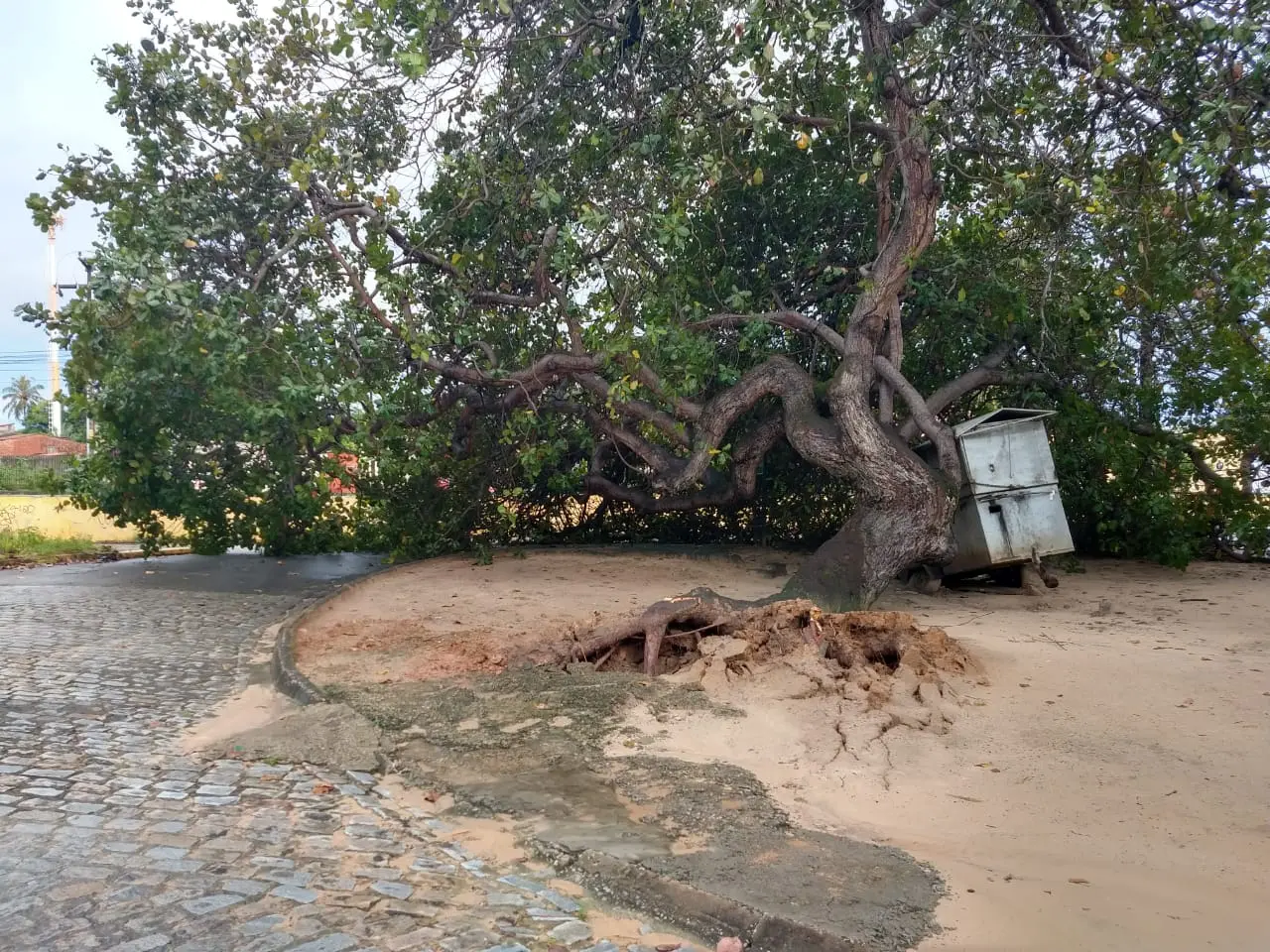 No bairro José de Alencar, caiu um cajueiro de grande porte e está bloqueando parte da Avenida Washington Soares.