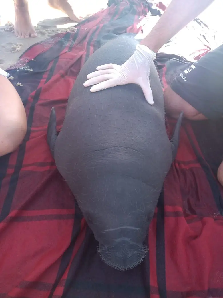 Filhote de peixe-boi é resgatado na Praia do Morro Branco