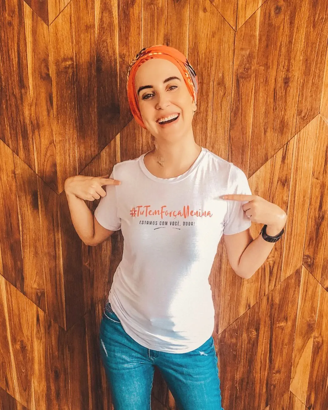 Duda foi iagnosticada com leucemia mieloide aguda no último dia 3 de maio. Desde então, ela compartilha sua rotina de tratamentos e incentiva doação de sangue e de medula óssea por meio da campanha “#tutemforçamenina” para os seus mais de 267 mil seguidores no Instagram.