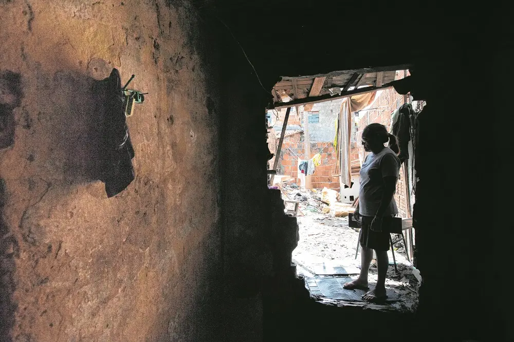 A situação precária já se estende por três anos, mas “piora em tempo de chuva, a água vai até a sala”. É assim também na casa de Maria Ângela Silva, que vive na Santa Rita há quase 30 dos 48 anos de idade. Divide as paredes rachadas e mofadas, parte já desabada, com o marido, o filho e, agora, a pneumonia. “Meu maior sonho é sair daqui, porque não adianta reformar. É derrubar e fazer de novo, tá tudo afundando. Tenho até medo de ir no banheiro e o teto cair na minha cabeça. Tomo banho é no quintal”, diz, com a tosse constante roubando os resquícios de energia.