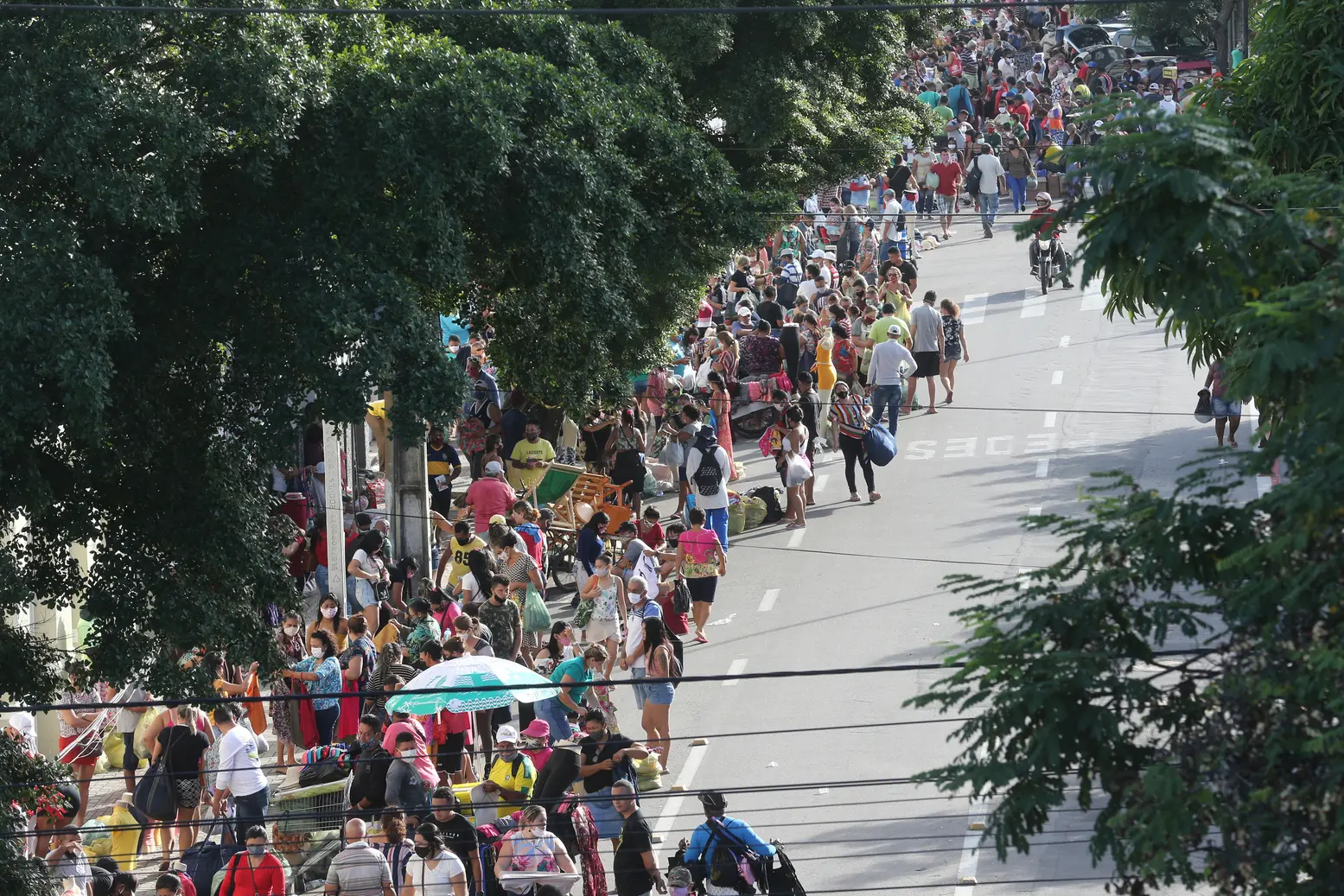 Se no início da pandemia um dos maiores dilemas era convencer as pessoas a, pelo menos, usarem máscaras, hoje, na experiência de reabertura, as cenas de aglomerações se repetem sistematicamente em espaços públicos. Ontem, em mais um episódio de descumprimento do distanciamento social, uma multidão de transeuntes se amontoava na tradicional feira da Rua José Avelino, no Centro. No último fim de semana, trechos da orla de Fortaleza estavam completamente lotados. Na maioria dos casos, predominava o não uso de máscaras de proteção.
