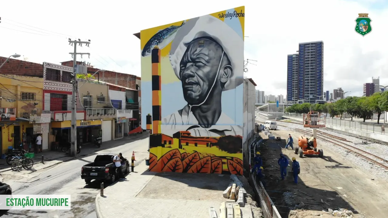 A iniciativa conta com a arte urbana do cearense Wesley Rocha, um nome renomado no Brasil. “A Seinfra entrou em contato comigo, o contato que eu tive foi com o André Pierre, e a gente pensou junto. Pelas viagens que ele faz para outros países, ele teve a ideia e eu topei na hora”, conta o artista, que cita que a chegada do metrô tem mudado a vida de muita gente, e eles queriam trazer a mudança visual para essas comunidades também.