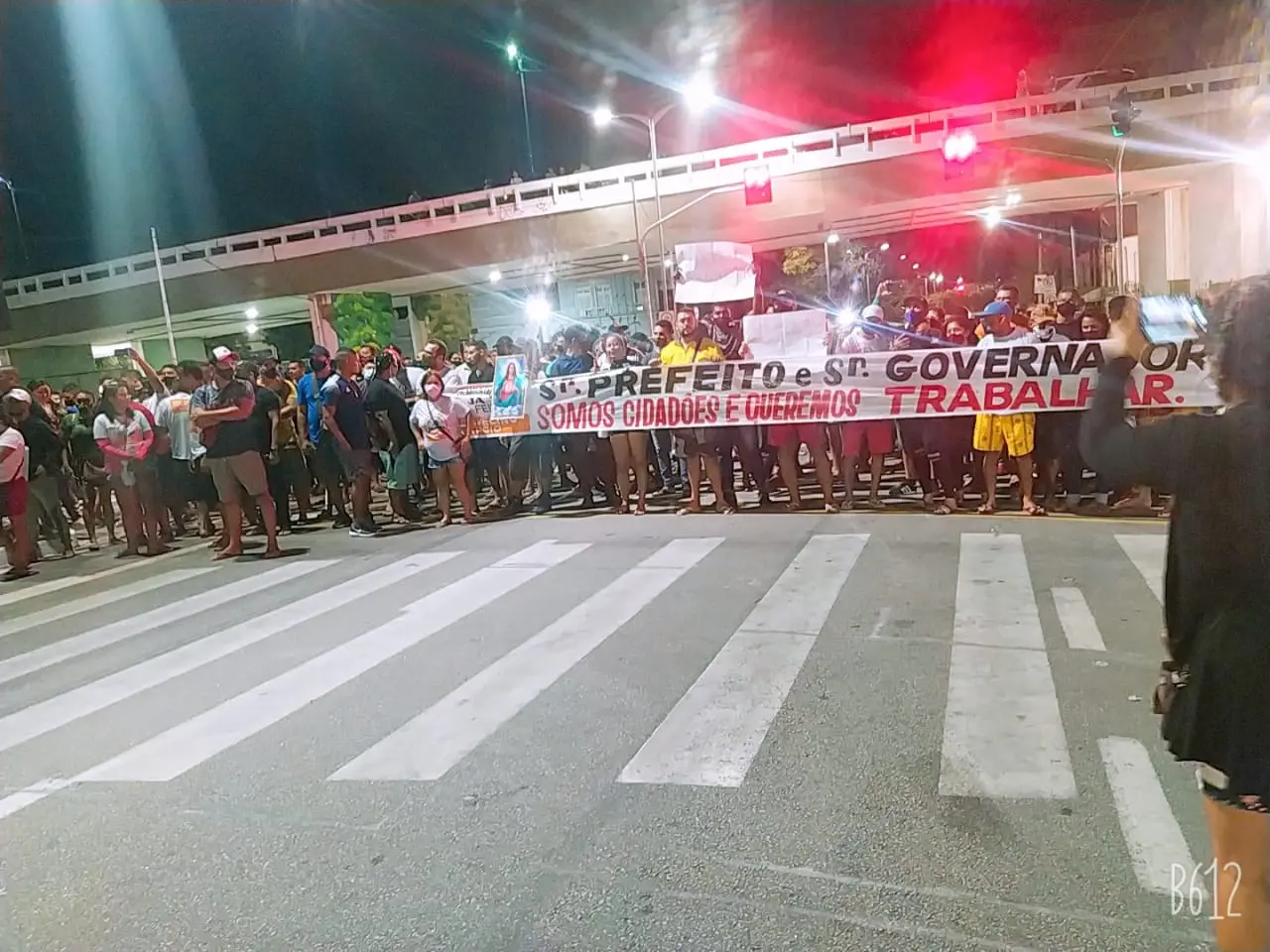 Desta vez, imagens registradas por feirantes mostram o momento em que eles realizam um ato e bloqueiam parte da Avenida Alberto Nepomuceno, no Centro. Em um cartaz, a categoria pede ao prefeito Sarto Nogueira e ao governador Camilo Santana a reabertura das feiras livres. "Queremos trabalhar".