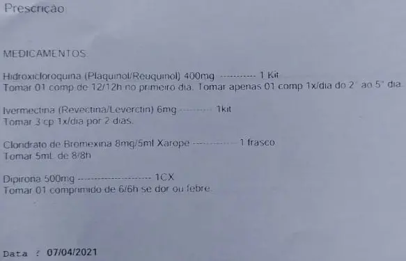 Em janeiro de 2021, uma mulher de 29 anos procurou um hospital da rede no segundo dia de sintomas de gripe. Mesmo sem um teste confirmado, já que ela estava fora da janela recomendada, o médico que a atendeu também prescreveu o kit afirmando ser “procedimento do hospital”.