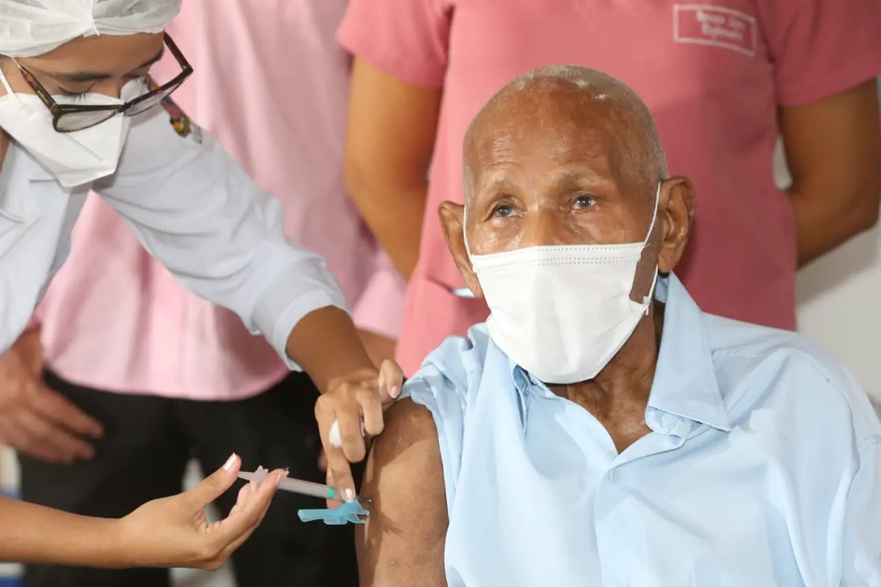 Idoso indígena de 106 anos é vacinado contra Covid-19 em abrigo de Fortaleza nesta terça-feira (19)