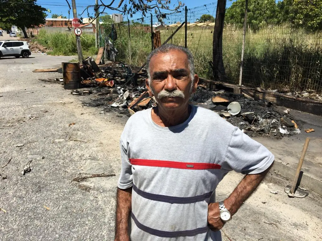 Idoso tem barraca de lona onde vive há dois anos incendiada no bairro Cidade dos Funcionários