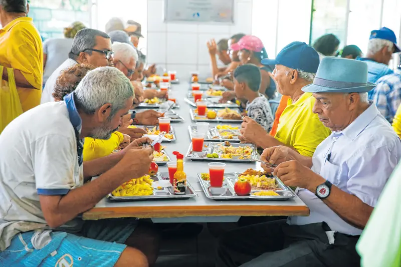 Cerca de 1.300 pessoas são atendidas por dia no espaço social, no bairro Parangaba. 70% dos frequentadores são idosos e alguns deles vêm da Região Metropolitana, percorrendo até 30km para conseguir refeição por R$ 1