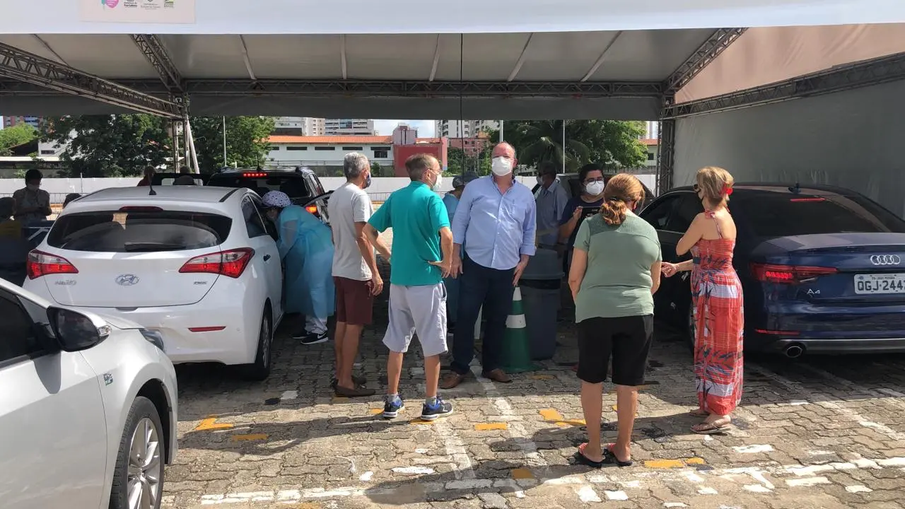No caso da aposentada Valéria Passos, a ida ao centro comercial nesta sexta foi estressante, mas compensadora. Ela levou o pai José Maria, 81, e a mãe Benedita, 78, para serem vacinados no drive-thru às 11h30. Após quase três horas de espera, ambos receberam as doses do imunizante.