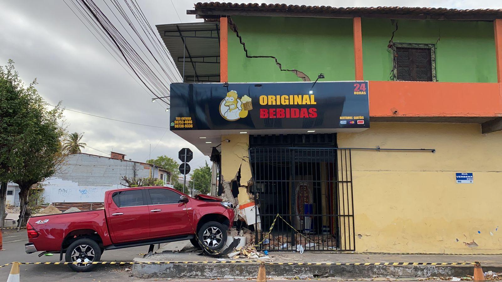 Um imóvel no bairro Bonsucesso, em Fortaleza, corre risco de desabar após ser atingido por um veículo ainda na noite do último sábado (21). A possibilidade de desmoronamento da estrutura foi confirmada pela Defesa Civil na manhã desta segunda-feira (23). O carro continua no local, onde funciona um depósito de bebidas.