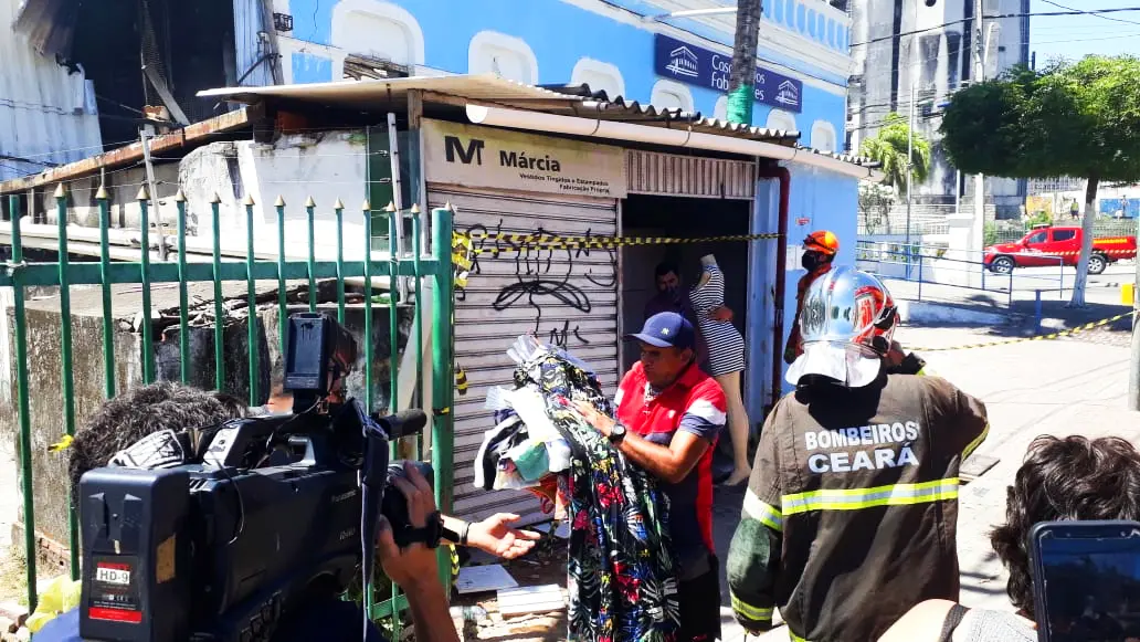 A dor de assistir seu local de trabalho ser foco de um incêndio foi imensurável para a permissionária Fátima Lúcia Castro. Há mais de 14 anos no Casarão dos Fabricantes, no Centro de Fortaleza, sua trajetória foi construída a partir de muita luta e esforço, tendo passado 10 anos trabalhando em lanchonete no local antes de conseguir ter sua própria loja. “É difícil recomeçar, mas como o cearense é acostumado a recomeçar, vamos tentar”, declara a comerciante.