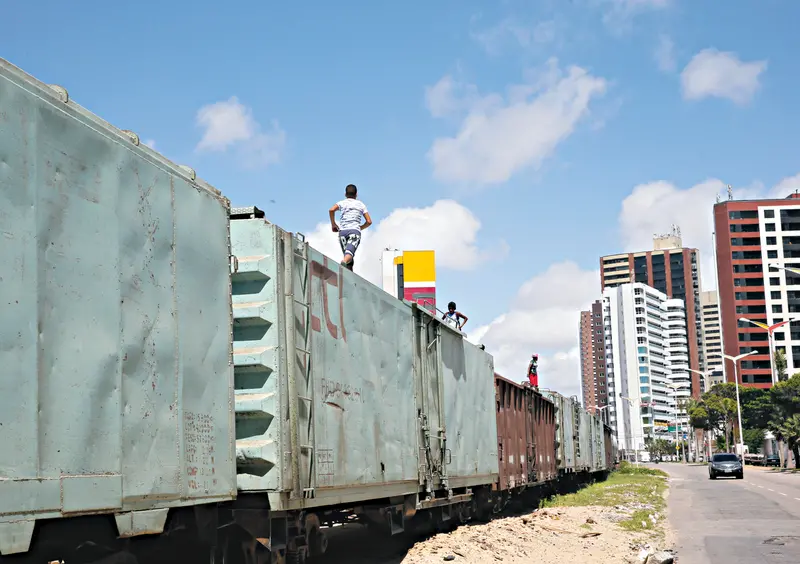 Diariamente, trens cargueiros cruzam Fortaleza para transportar combustíveis, alimentos e materiais de construção até o porto marítimo do Mucuripe. Porém, quem para e observa a passagem deles nota uma brincadeira antiga e perigosa: o "surfe ferroviário". Na manhã da última quinta-feira (28), a reportagem do Diário do Nordeste flagrou quase dez crianças e adolescentes se equilibrando de forma arriscada sobre vagões.