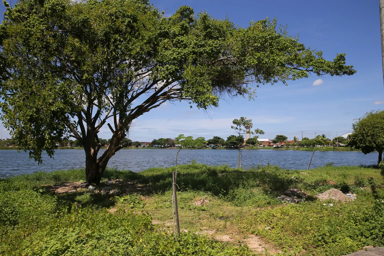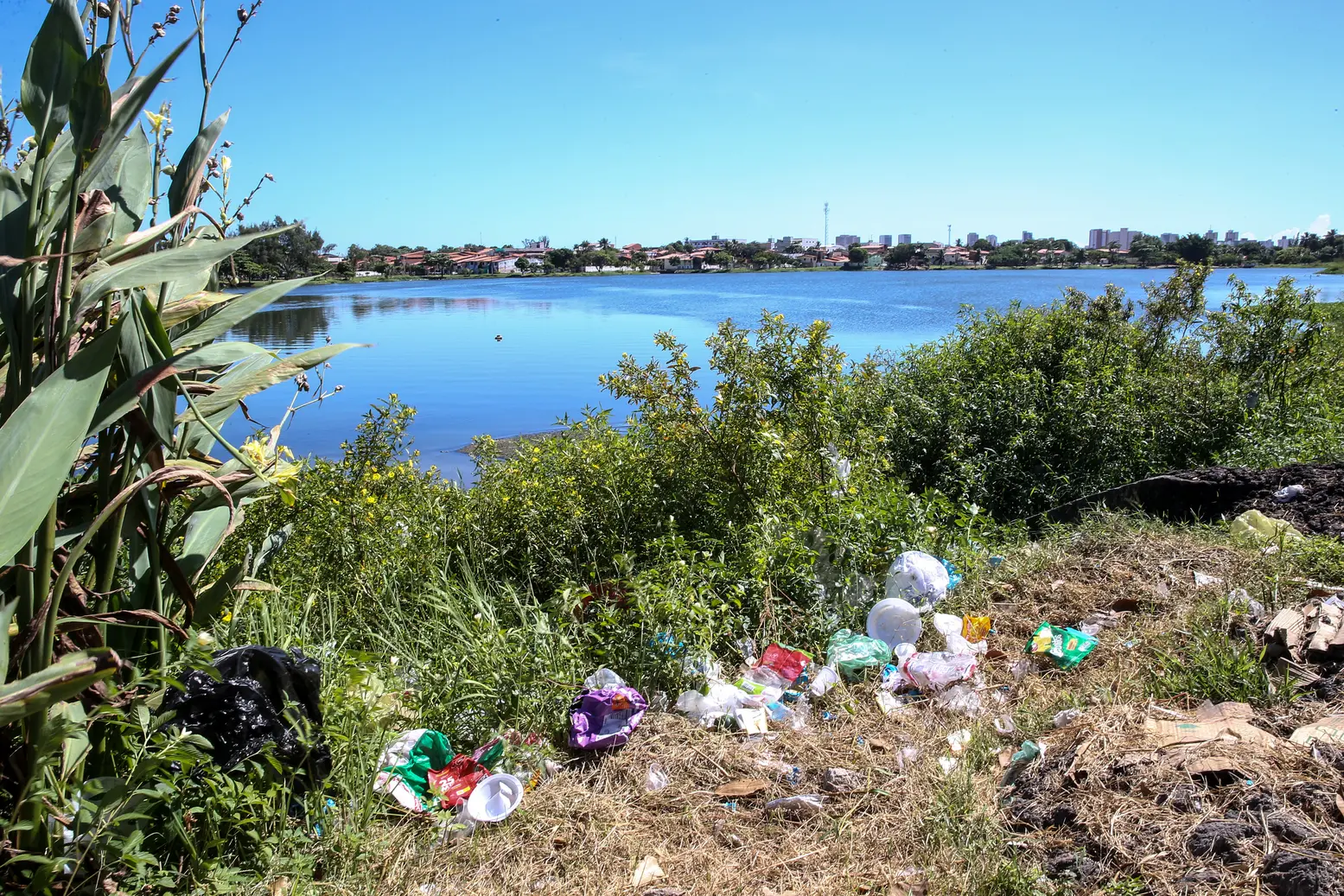 No entorno à beira d’água, a vegetação crescida toma o espaço antes ocupado pela população, que se vê privada das caminhadas diárias e dos banhos na lagoa, devido às calçadas obstruídas e à poluição, respectivamente.