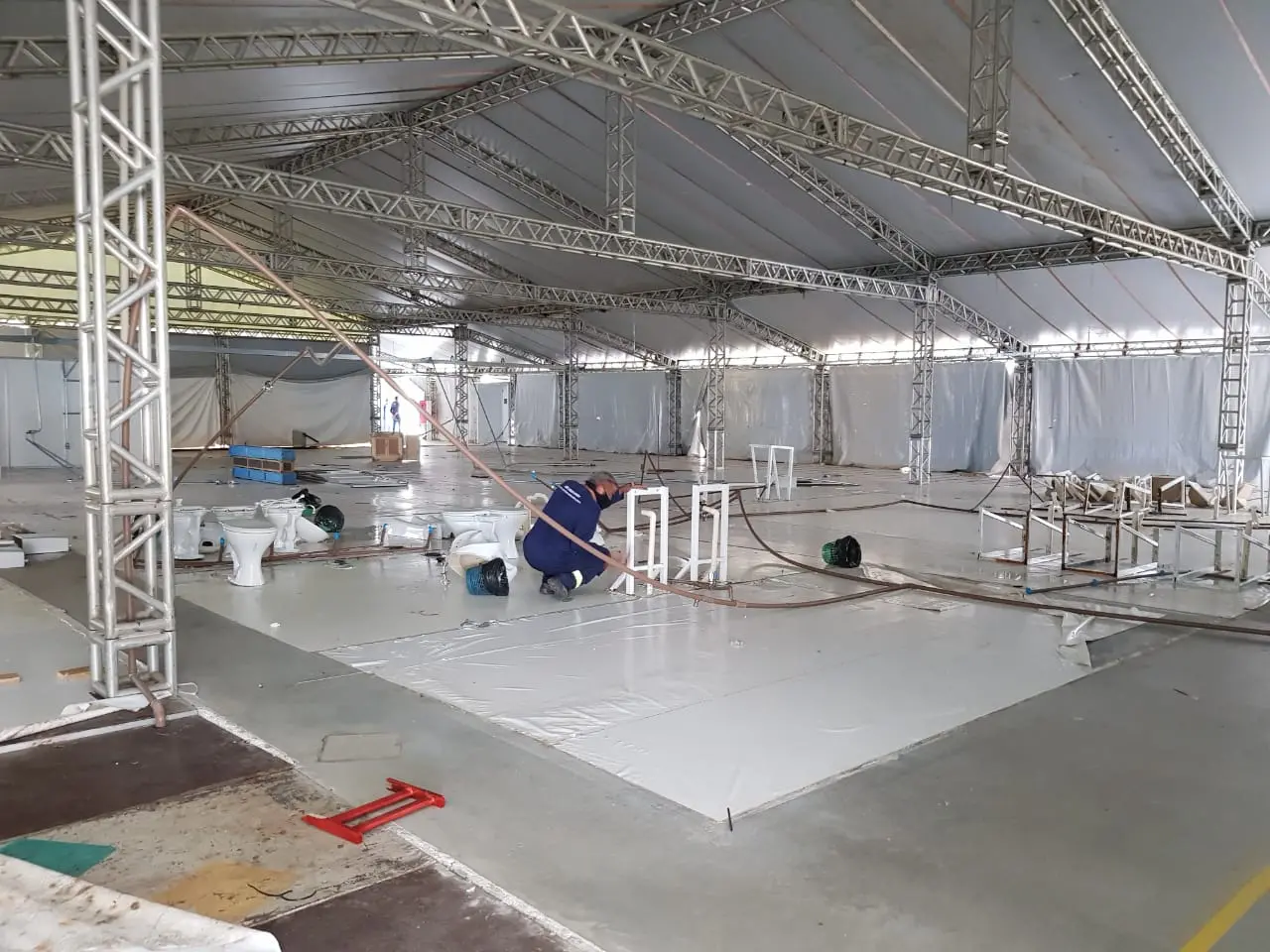 Unidade de saúde emergencial para casos Covid-19 começa a ser desmontada na manhã desta segunda-feira (21). Parte da rede elétrica já foi retirada