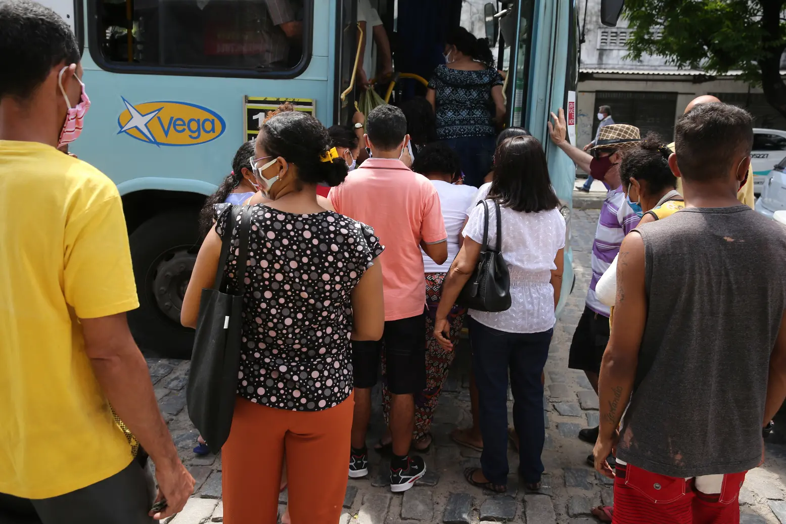 Lotação nos ônibus e aglomerações nas paradas marcam a volta para casa, no primeiro dia da Fase 1