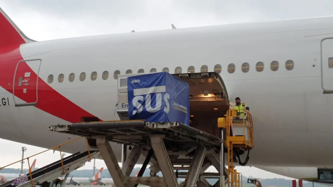 O voo, previsto para chegar às 15h35 em Fortaleza, irá trazer 255,7 mil doses da vacina AstraZeneca e outras 17,5 mil da vacina da Pfizer.
