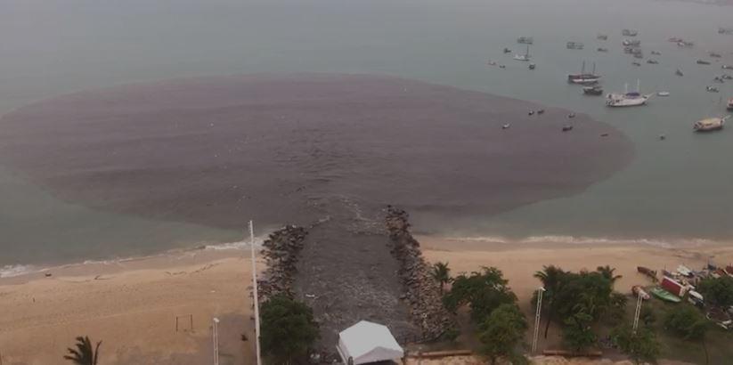 Em vídeo filmado por uma moradora, é possível ver imagens da mancha no mar. Segundo ela, a imagem foi registrada por volta de 7h38. O local fica na Avenida Beira-Mar perto da Rua Tereza Hinko.