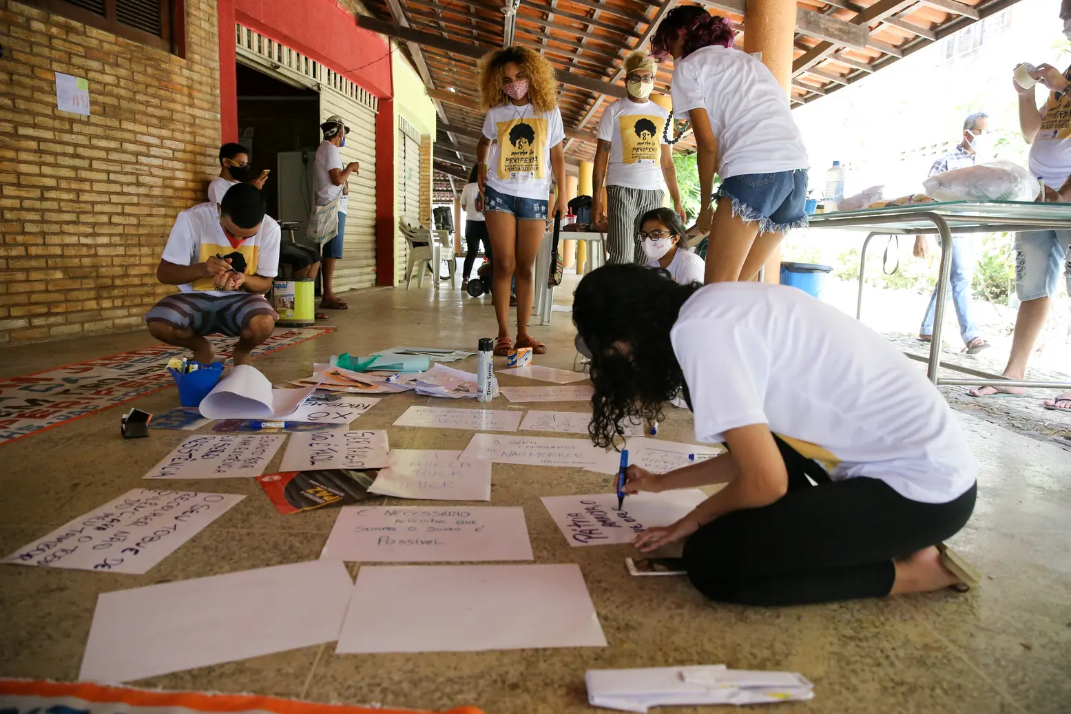 Na Ponte do Siqueira, sinal da Escola Júlia Alves, na Av. Osório de Paiva e em frente ao Centro de Defesa da Vida Herbert de Sousa (CDVHS), no Grande Bom Jardim, integrantes de coletivos, entidades e movimentos sociais faziam pinturas de painéis, dando início nesta manhã ao primeiro dia da Marcha da Periferia, em Fortaleza. A ação está na sua oitava edição denunciando as violações sofridas pelo povo preto e pobre da Capital. Amanhã, 5 de dezembro, a concentração será na Ocupação Carlos Marighella, no Mondubim.