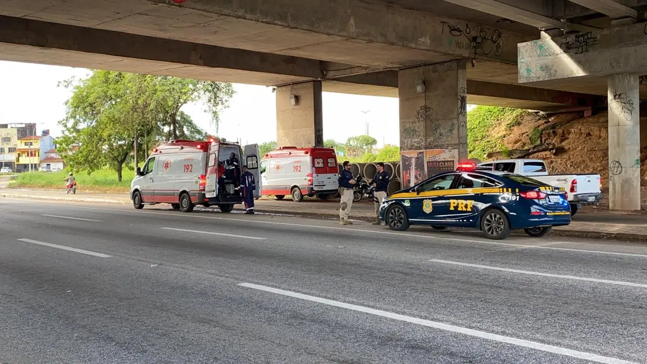 Motorista e ciclista ficam feridos em acidente embaixo do viaduto da Aerolândia, na BR-116