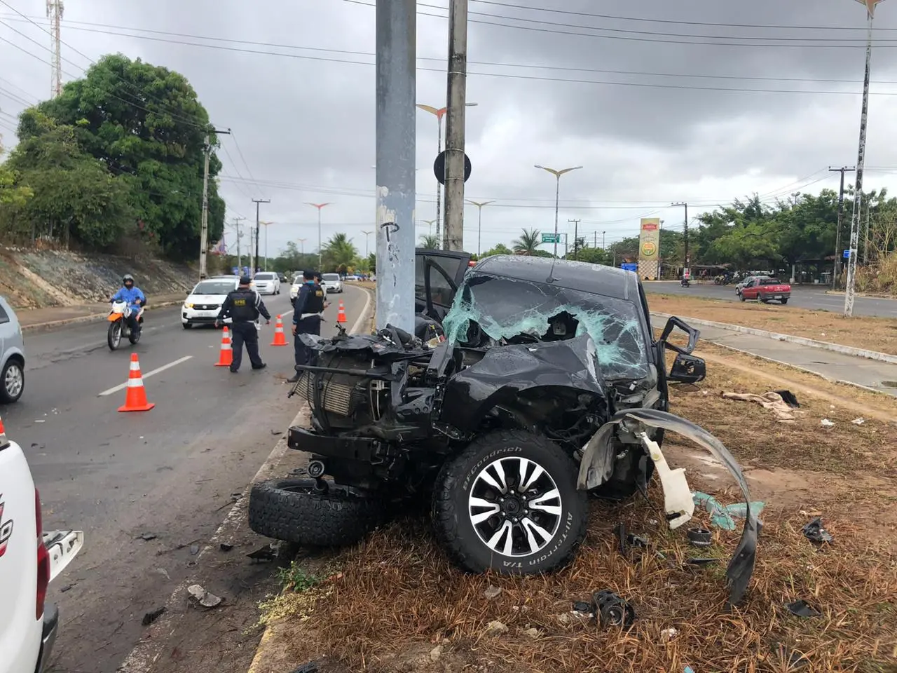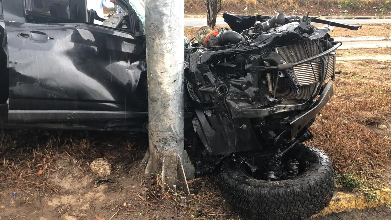 Uma motorista colidiu com um poste do canteiro central após perder o controle do veículo na "Curva das Tapioqueiras", no quilômetro 14 da CE-040, no Bairro Messejana, na manhã desta quarta-feira (11). A condutora, Kelvia Alves, de 34 anos, foi levada a um hospital particular com a perna direita e o braço esquerto fraturados.